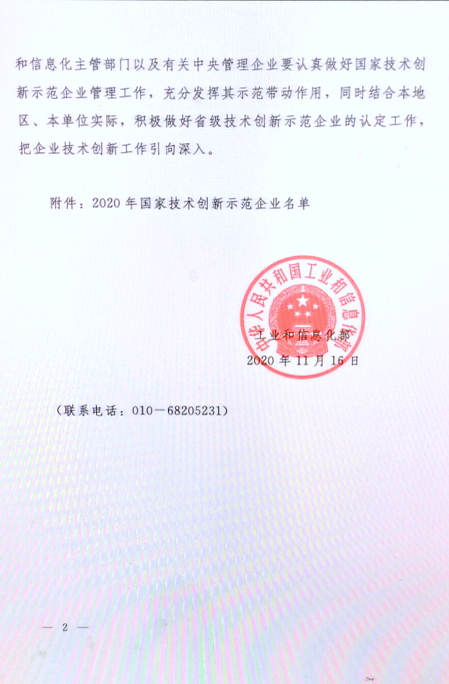 近日,,根据《国家工业和信息化部关于公布2020年国家技术创新示范企业名单的通知》(工信部科〔2020〕174号)文件,,,漳州雀魂光电子科技有限公司榜上有名,,是福建省唯一一家上榜该荣誉的企业。。